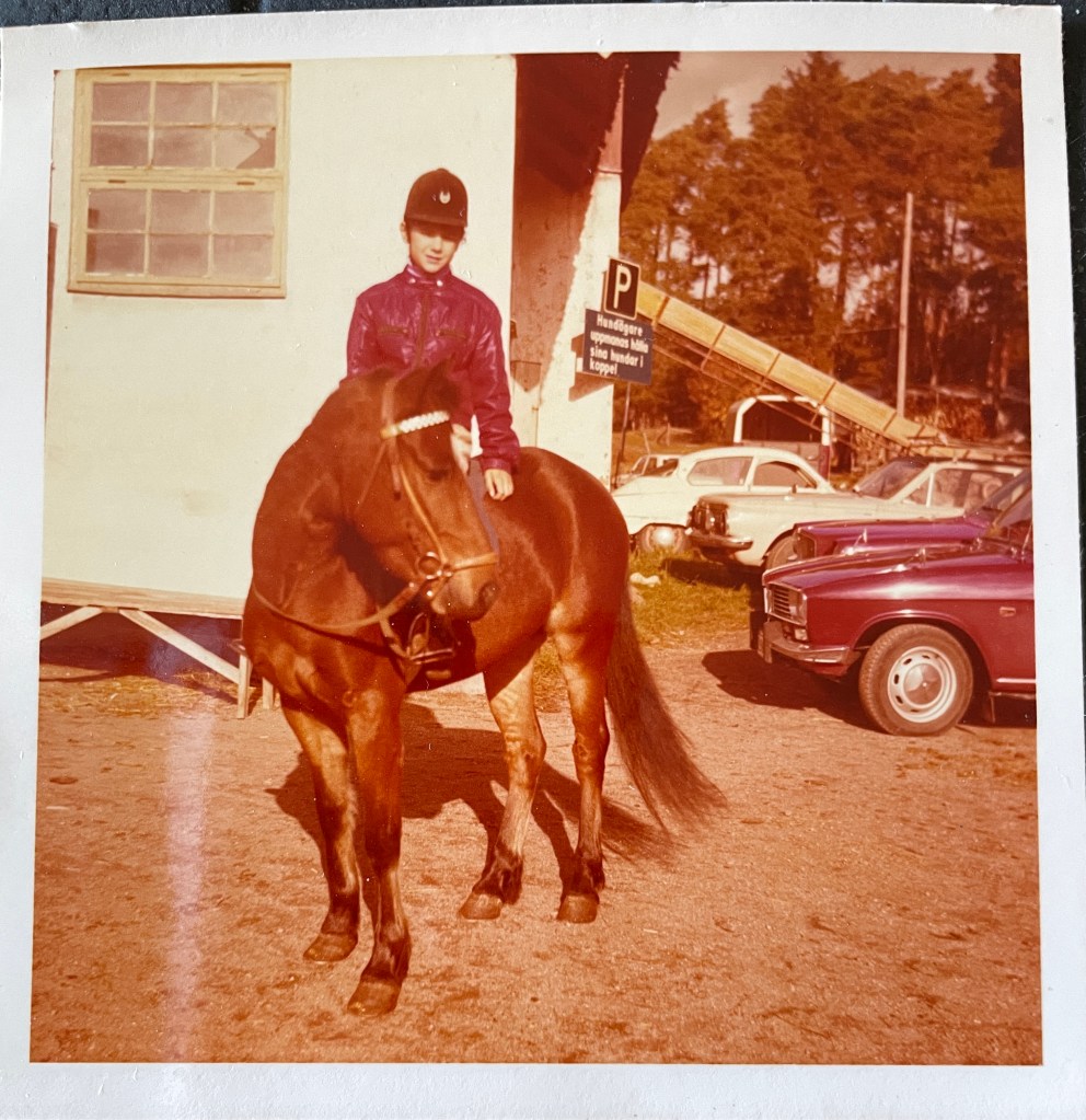 På sensommaren 1971 bytte jag till en större ponny, Filur av Gränby, kat B, e. Slieve Dara u. Jessica. Han var fyra år när vi träfffades, som ett litet fullblod att rida.